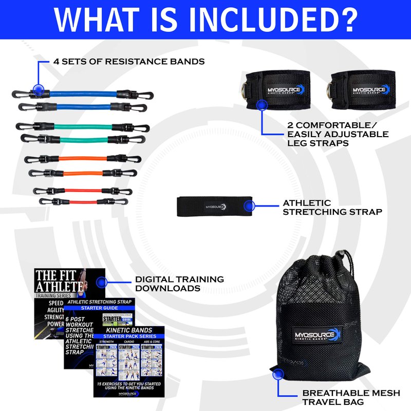 Kinetic Bands - Leg Speed Resistance Bands - Performance/Fitness Training - 4 Resistance Levels, Stretch Strap, Digital Training Series (Red, Orange, Green, Blue - Ages 13 & Over)