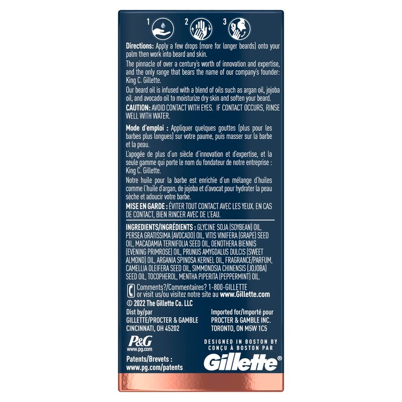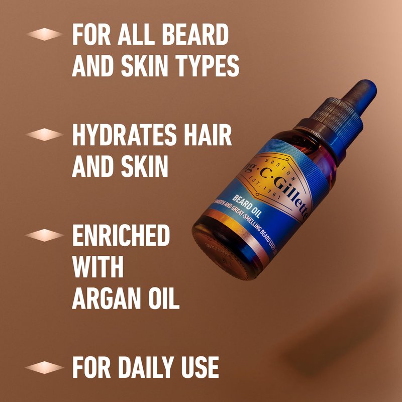 King C. Gillette Beard Oil for Men - Argan, Jojoba, Avocado, Macadamia Seed and Almond Oils - Moisturize and Soften Beard