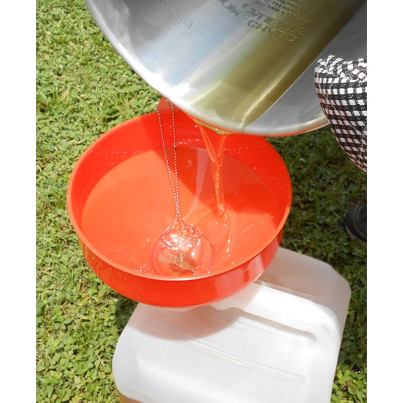 King Kooker 8" Plastic Cooking Oil Funnel with Attached Reusable Stainless Steel Mesh Filter