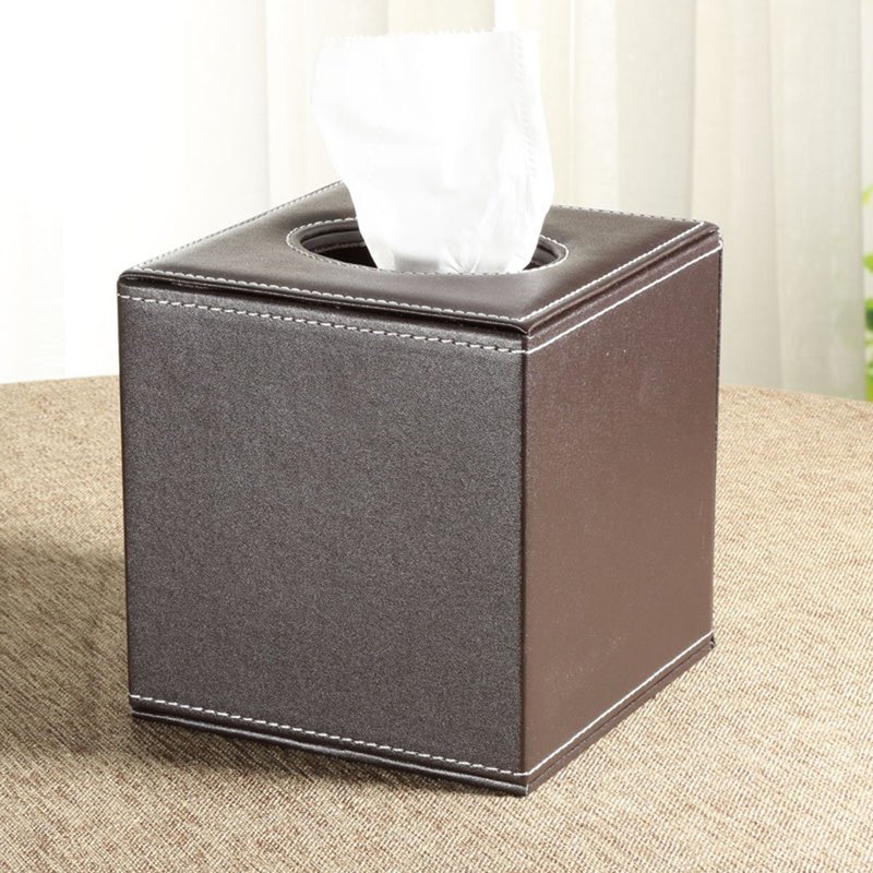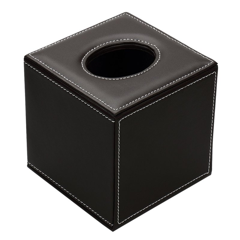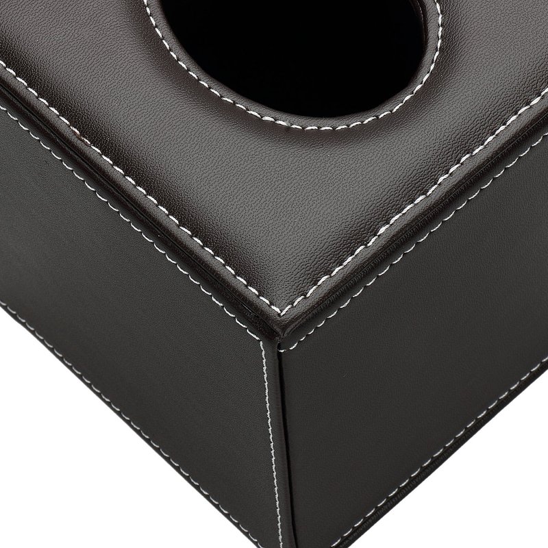 - QUALITY MATERIAL & CONSTRUCTION: The square tissue box cover made of PU faux leather with attractive white stitching, and interior is flannel, simple to clean, just wipe down with damp cloth.