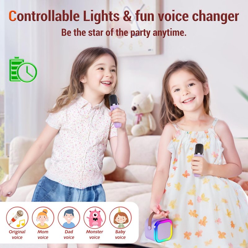 - Single Microphone Stereo Sound Effect: This children's karaoke machine is equipped with a high-quality wireless microphone, allowing children to enjoy a unique singing experience. With unique sound settings (original, KTV mode, female voice, male voice, children's, magical sound effects), it helps children better showcase their singing talents. With simple operation, you can easily switch between original voice and accompaniment mode