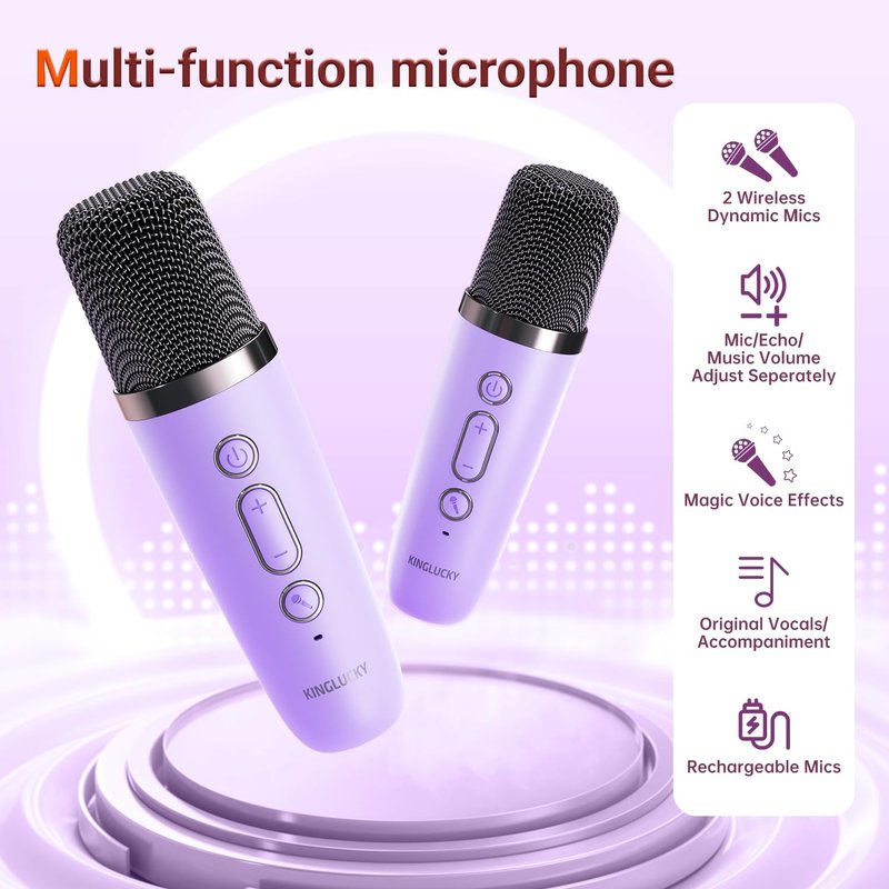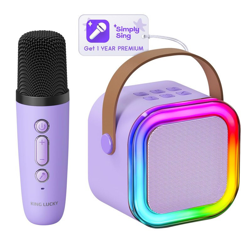 Kinglucky Gift Idea Karaoke Machine for Kids, Portable Mini Karaoke Machine Bluetooth Speaker with 1 Microphone, Colorful Lights & Long Play Time, Birthday Gift for Girl Ages 3-12 Toys Party (Purple)