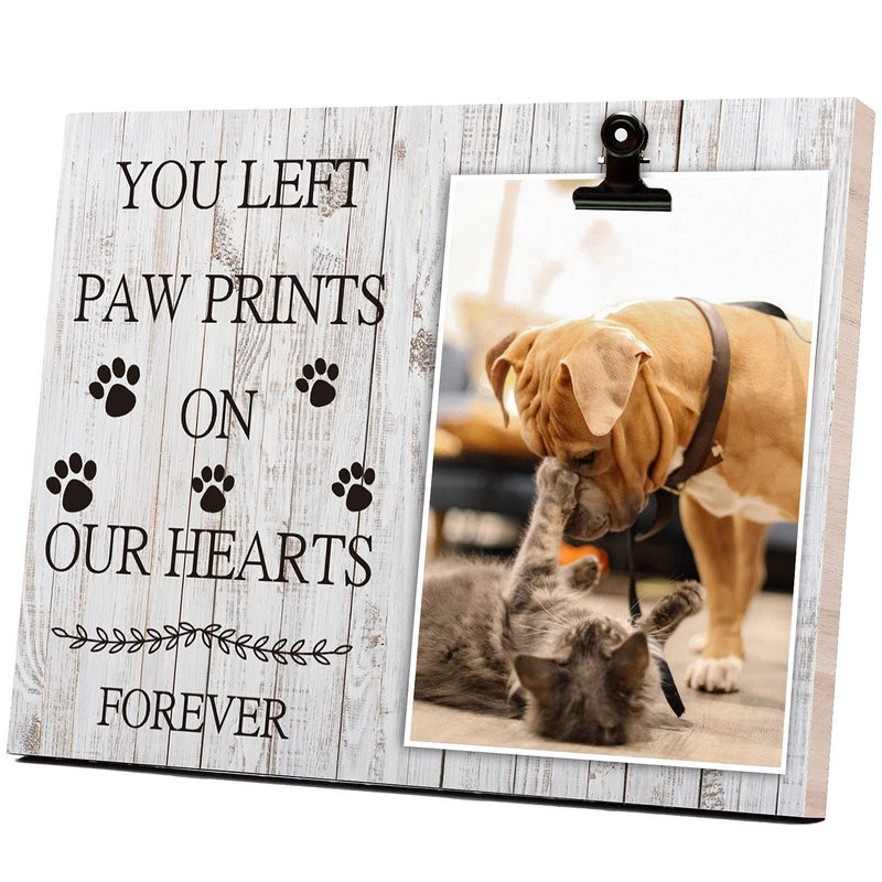 - Pet memorial gifts picture frame: Engraved words "No longer by my side but forever in my heart", can be pet memorial gifts, pet rememberance gift dog cat, pet loss gifts, pet bereavement gifts.