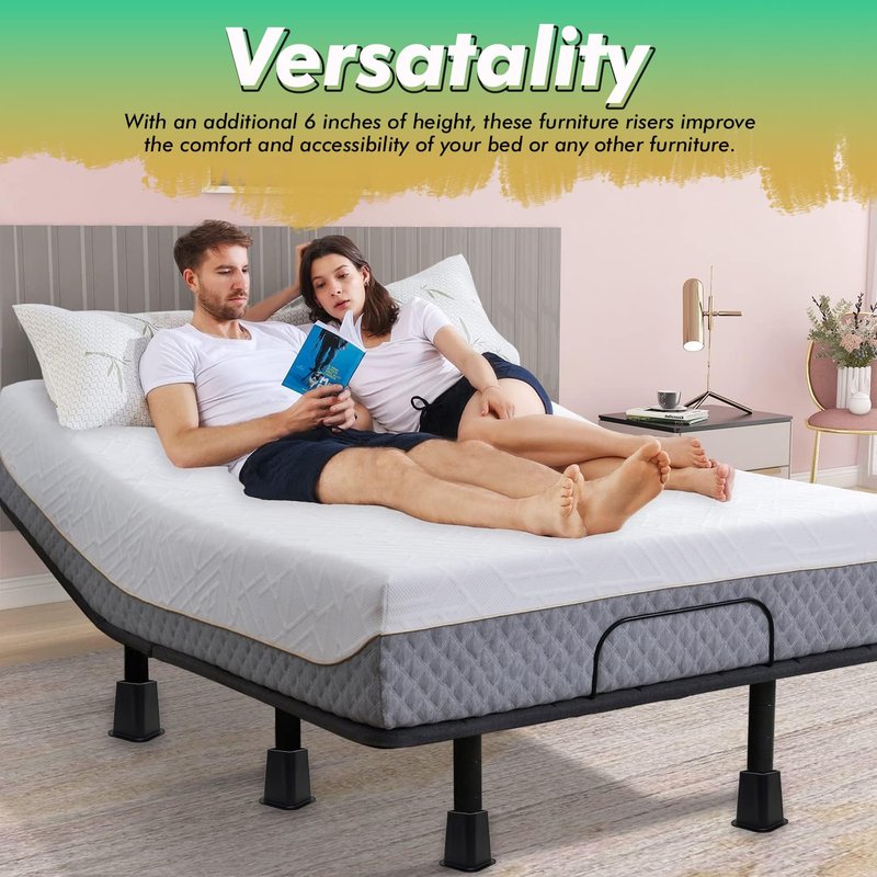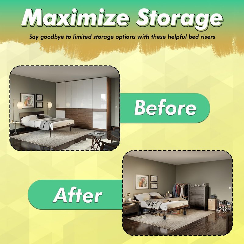 - MAXIMUM STORAGE SPACE: Our furniture risers 6 inch create valuable storage space underneath your furniture and also easily and firmly hold your furniture. You can utilize the extra space to store clothes, shoes, bedding, and other items and keep your room organized and clutter-free.
