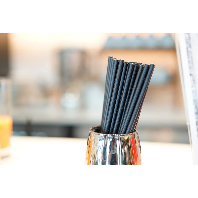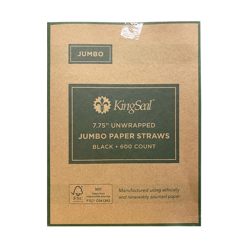 Kingseal FSC Certified Disposable Paper Drinking Straws, BLACK, Unwrapped, 7.75 inch Length x 0.6mm diameter, "Jumbo" Size, Biodegradable, Earth Friendly, Bulk Pack - 600 Straws per Box