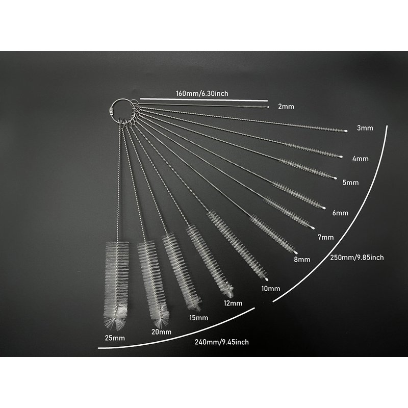 Kingsem Drink straw cleaning brushes made with 304 stainless steel wire and Nylon wool, it can safety and easily clean out the inside of any Drink straw and tube. Cleaning diameter is 2mm 3mm 4mm 5mm 6mm 8mm 10mm 12mm 15mm 20mm 25mm, 160mm 240mm 250mm in lengths. This product is equipped with a detachable hanging ring, which is convenient for storage and use. !!!Reminder: This product contains small accessories, please do not let children play or eat by mistake!!!