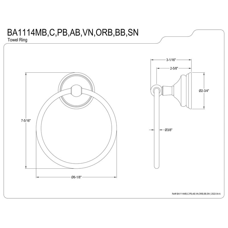- 6" diameter towel ring