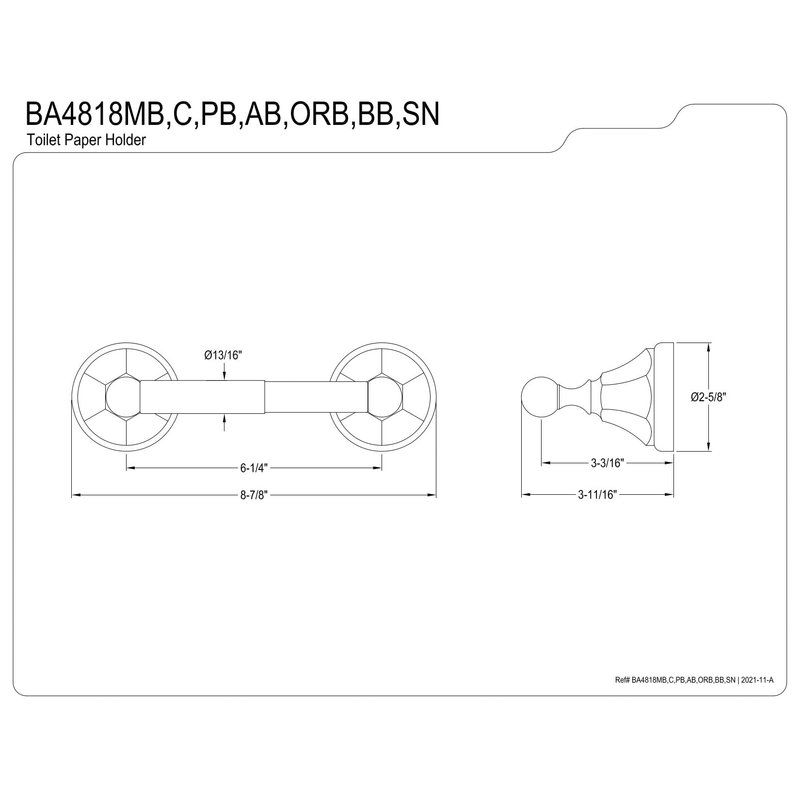 Kingston Brass BA4818C Metropolitan Toilet Paper Holder, 8-3/4-Inch, Polished Chrome