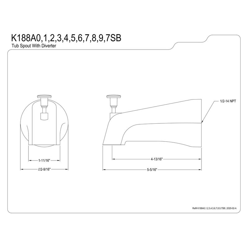 Kingston Brass K188A1 Designer Trimscape Showerscape 5-Inch Tub Spout with Diverter, Polished Chrome