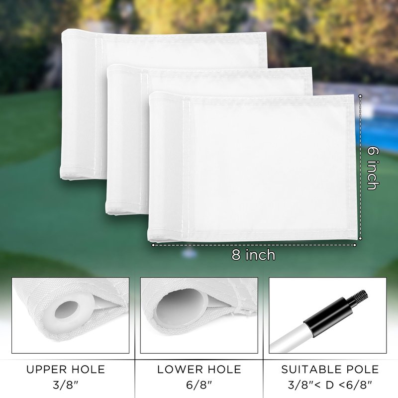 KINGTOP Golf Flag 8x6 Inch - Plain White, 420D Nylon, Tube Inserted - Mini Practice Putting Green Flags for Yard, 3-Pack