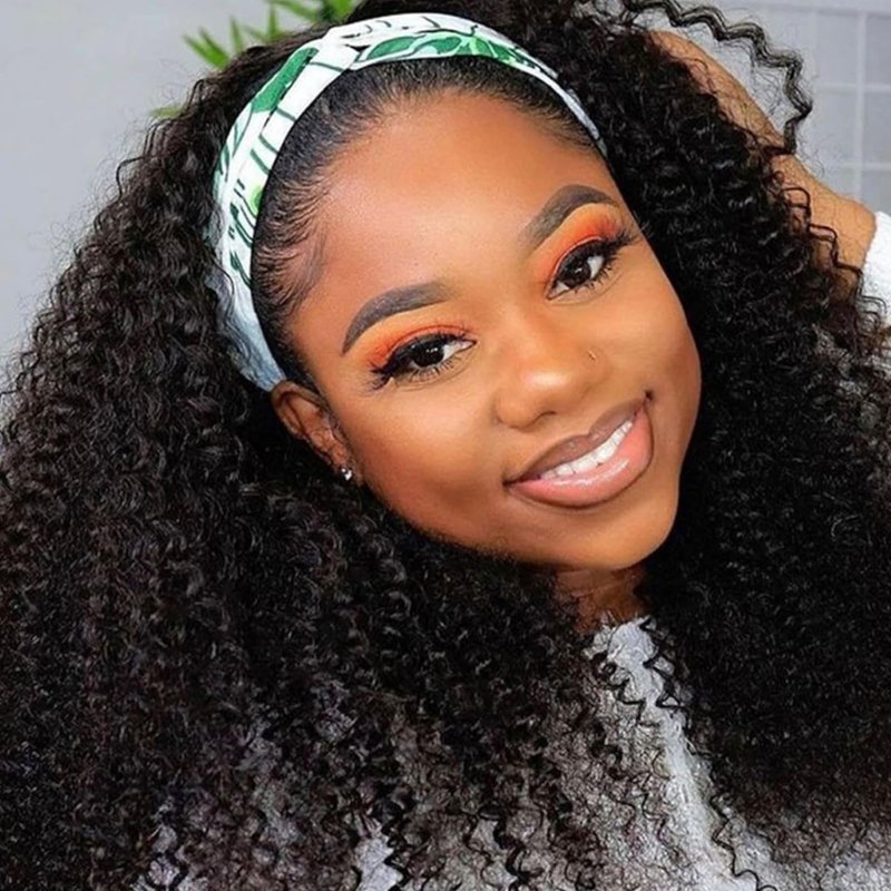 2.Hair Type:Kinky Curly Headband Wigs Human Hair