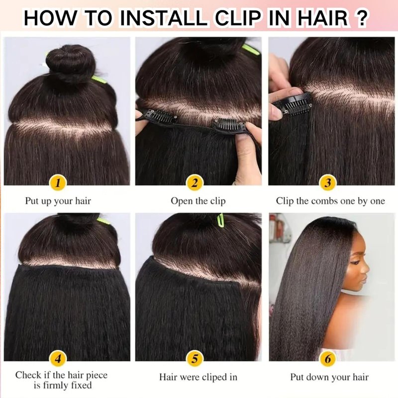 - - YAKI Kinky Straight Hair Texture: Our kinky straight clip ins hair extensions feature a YAKI kinky straight hair texture that mimics the appearance of real human hair, adding volume and length for a stunning transformation. It blends seamlessly with your own hair, giving you a natural and realistic look