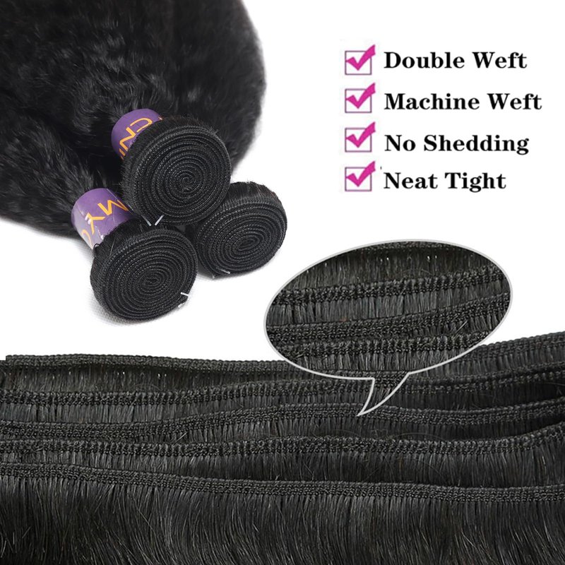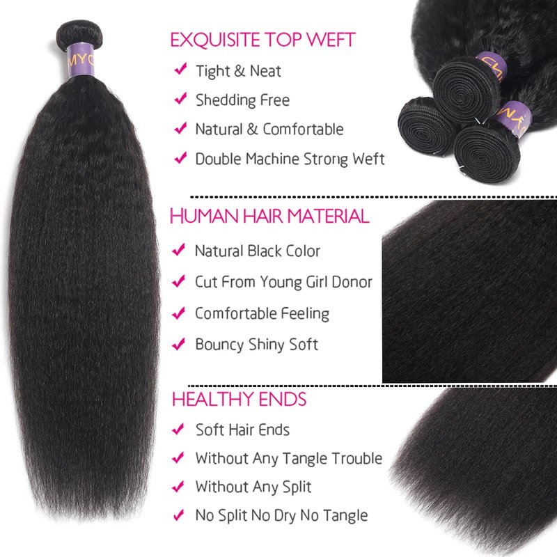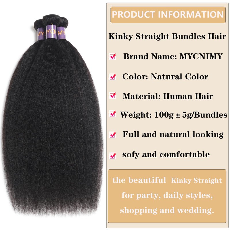 - Made with Brazilian Virgin Hair: Our Kinky Straight Human Hair Bundles are made from Brazilian virgin hair, With its soft and smooth texture, these remy hair bundles provide a natural look that seamlessly blends with your own hair.