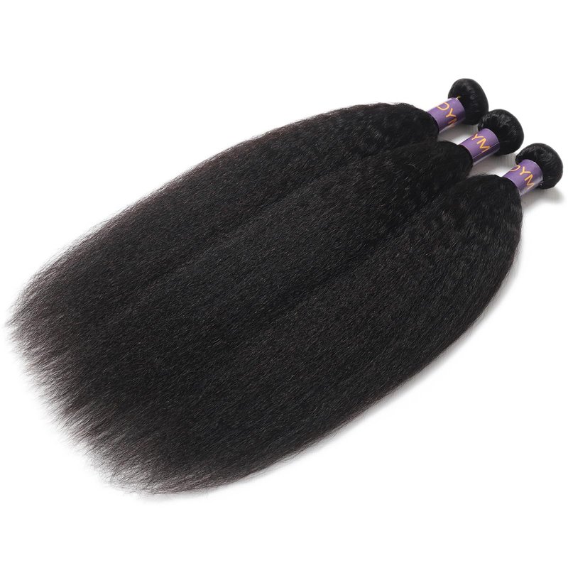 Kinky Straight Human Hair 3 Bundles Natural Black Yaki Straight Human Hair Extensions 100% Unprocessed Brazilian Virgin Remy Hair Grade 10A Kinky Straight Human Hair For Black Women(16 18 20 Inch)