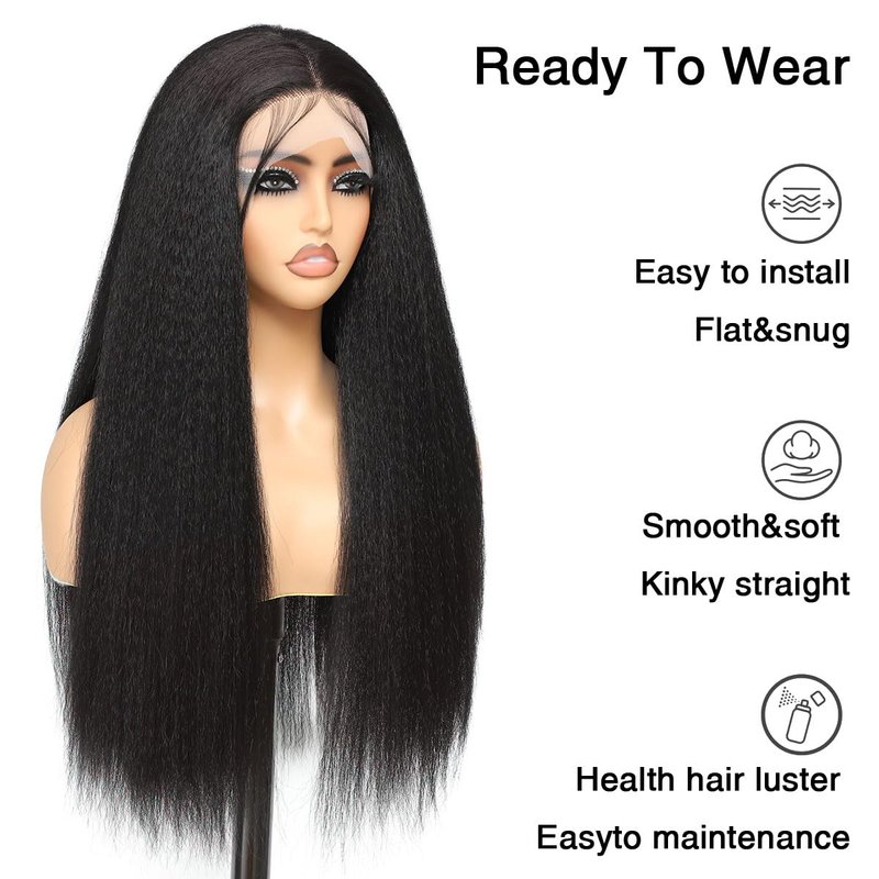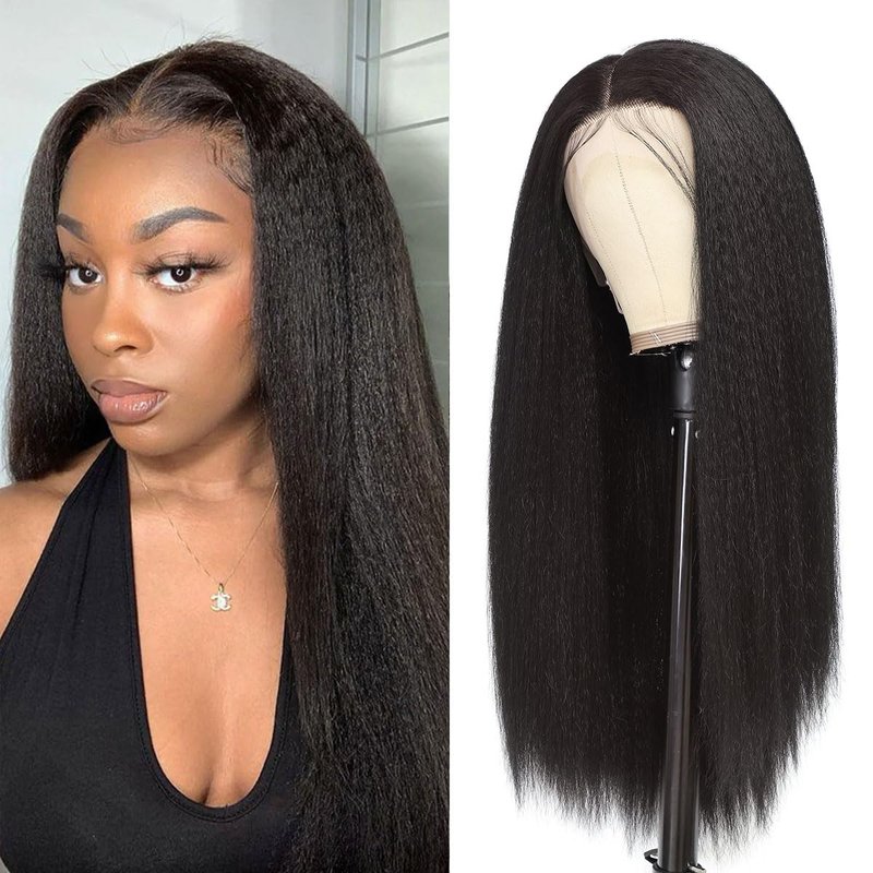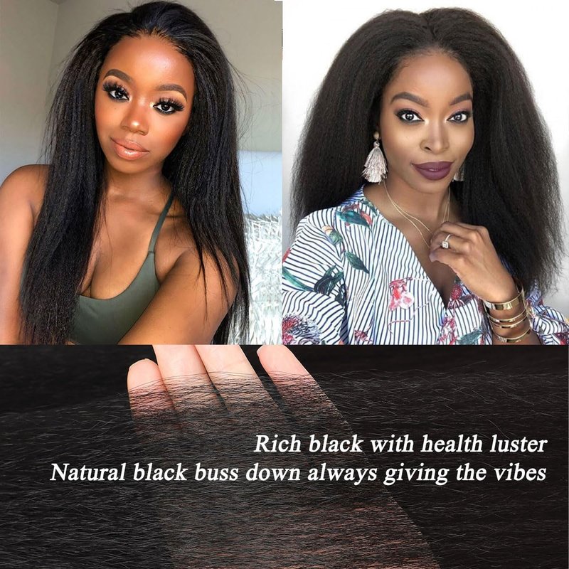 Kinky Straight Synthetic Lace Front Wigs for Women Glueless Lace Wigs Synthetic Long Yaki Straight Lace Front Wig Natural Wig Heat Resistant Fiber Natural Black Hair Wig With Baby Hair 24 Inch 13x4x1