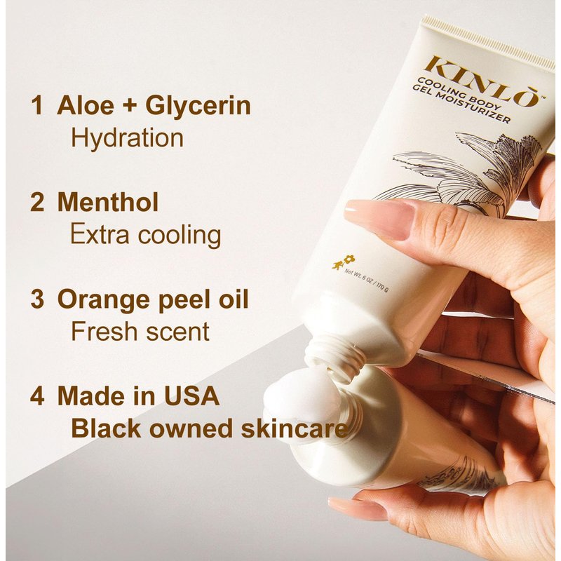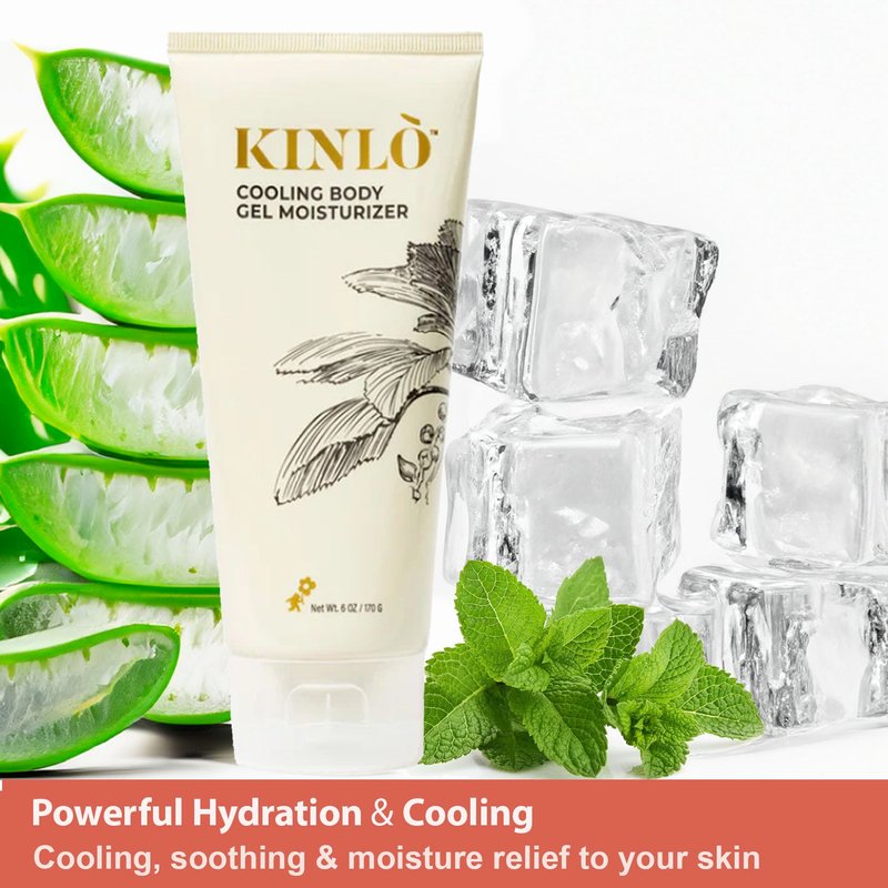 Kinlo Cooling Body Gel Moisturizer 6oz | Aloe vera gel Cooling Hydrating Skin Care Body Lotion | Aloe + Glycerin + Menthol| Black Owned Skincare
