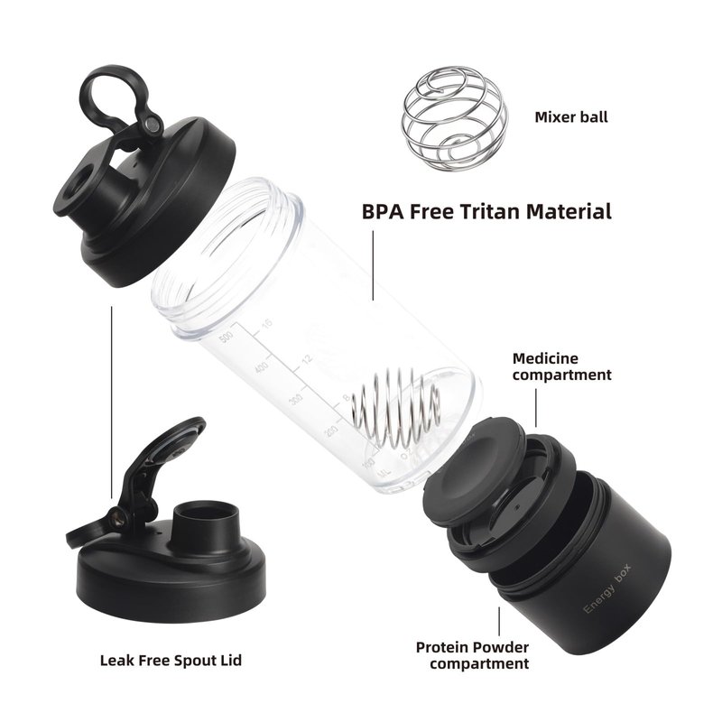 - 【All-In-One Shaker】Interlocking jars can be used with or without bottle for protein shaker and supplement storage, allowing you to add protein powder to your drink anytime, anywhere, and meet your nutritional needs.