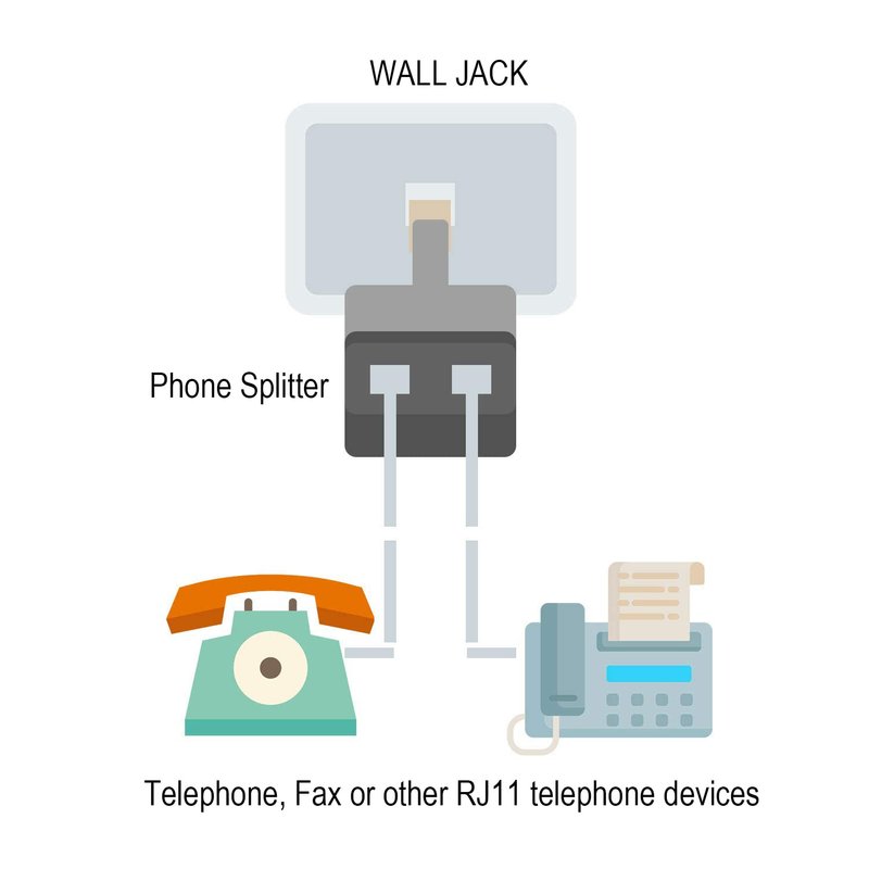 - Two way Telephone Splitter - Specially designed 2 way RJ11 6P4C splitter lets you plug in two phone devices to one wall socket, that's convenient to use 2 phones or FAX machine.
