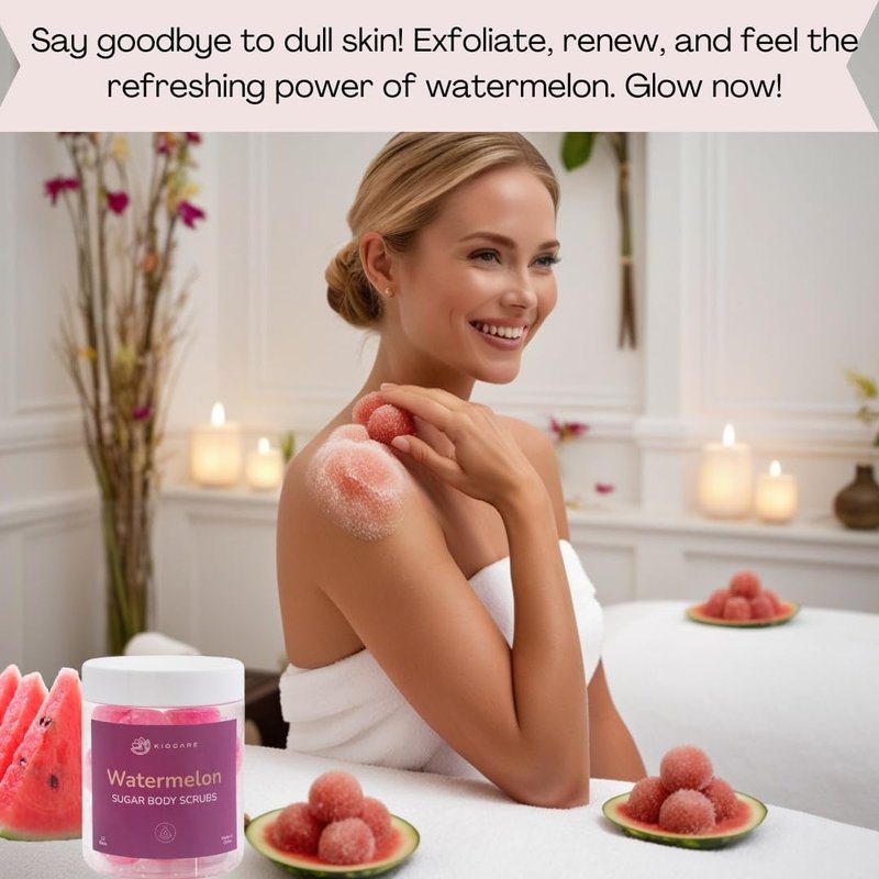 - AROMATHERAPEUTIC DELIGHT AND GENTLE EXFOLIATION – Transform your daily skin care routine into a spa experience with our Watermelon Body Sugar Scrubs. These sugar scrub balls gently exfoliate, leaving skin soft and hydrated, while offering aromatherapy benefits. Ideal as an exfoliating body scrub, they work as a body exfoliator for hands, feet, and body. Perfect for all skin types, these sugar scrubs rejuvenate your senses with every use.