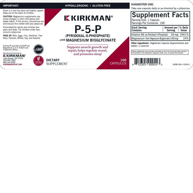 Kirkman – P-5-P (Pyridoxal 5-Phosphate, Vitamin B-6 Metabolite) with Magnesium Bisglycinate - Hypoallergenic