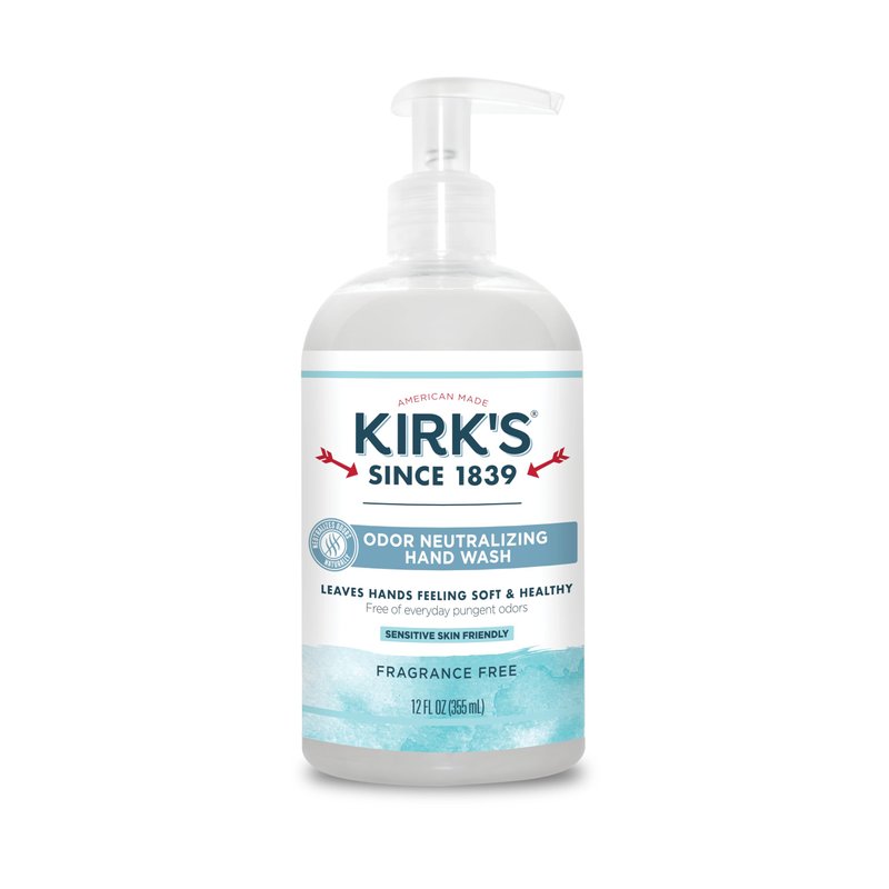 - SENSITIVE SKIN FRIENDLY Kirk’s odor-neutralizing hand wash contains no harsh chemicals or toxins that may dry or irritate your skin. Our natural formula is hydrating and safe for the most sensitive hands. Perfect as a kitchen hand soap, when hand washing is constant!