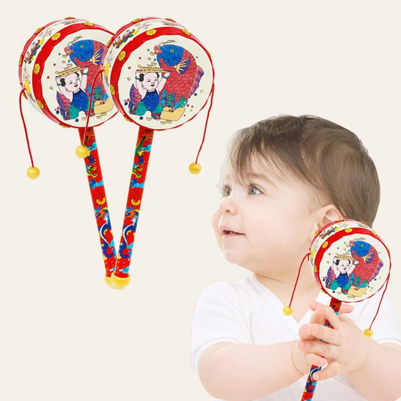 - Trasitional Chinese Spinning Pellet Drum--Wooden Hand Rattle Baby Rattle Shaking Toy Traditional Handheld Rattle Baby Toy The wood material is and safer, allowing your children to have more fun