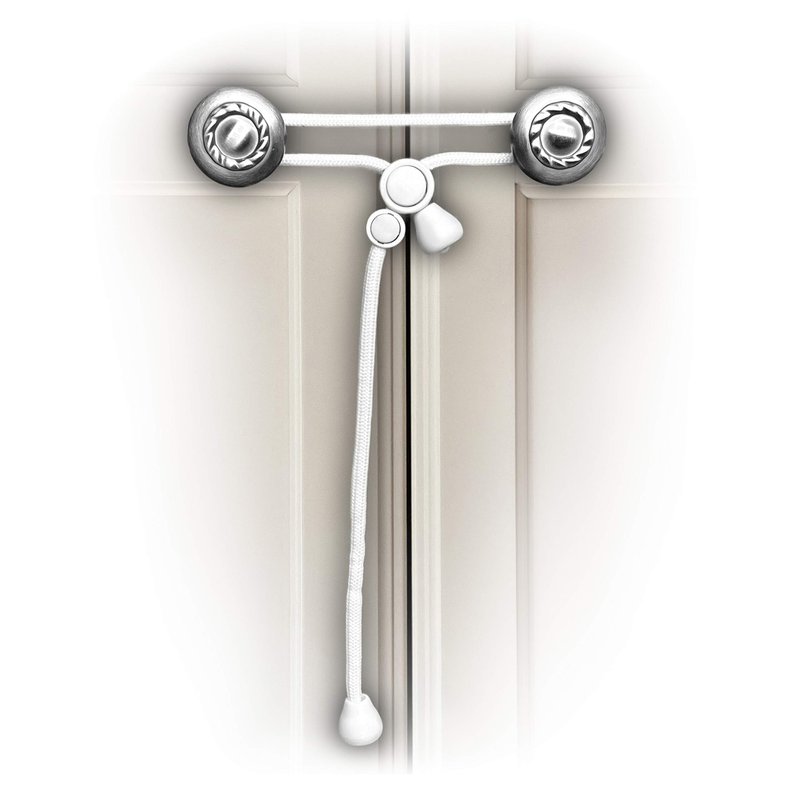 5 Pack baby safety locks are designed by a mom for moms. Ever thought about what could happen to your expensive furniture when you try to remove an adhesive from the doors after 2-3 years? Our latches keep small children safe, and offer the best protection and easy installation with no tools, adhesives, screws or drill necessary. New parents with little one’s can rest easy that our ties will babyproof their house. After a few tugs on the strap, kids simply give up and leave the knob alone. Our childproofing kit is also great for grandparents needing a temporary locking solution because they won't scratch or damage kitchen and bathroom cabinets and they are very easy and effective to use. The cords can be removed using just one hand making getting into cupboards a snap. Our child proofing products are time tested and have consistently been used by moms and dads for over 10 years. Unlike magnetic locks, our no drilling or adhesives childproof cord latches are portable and can go anywhere with on the go parents to secure cabinet knobs and keep your new baby out of danger. Our safety products also make for a great gift for a baby shower, birth announcement, or new baby present. New parents will be prepared when their infant begins crawling at 6 months old, the suggested time to baby-proof. Give our child proof safety latch a try. They can fit knobs up to 5 inches apart. Please confirm the distance between the knobs prior to ordering. We do not make longer cords for product safety reasons. These cord lock child cabinet latches work on knobs only and will not work on a closed loop straight handle. If you have handles, please see our other Kiscords safety fastener designed for that purpose.