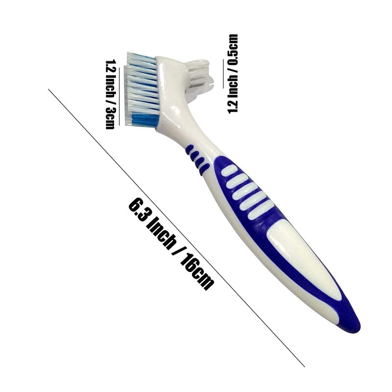 - Double Bristles: Each brush have two sides bristles, bristles on the front side are about 3cm long, back side is about 1.2cm. The front and gap of denture can be cleaned.