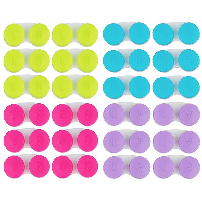KISEER 24 Pack Colorful Cute Contact Lens Case Bulk Box Holder Container Soak Storage Kit (4 Color)