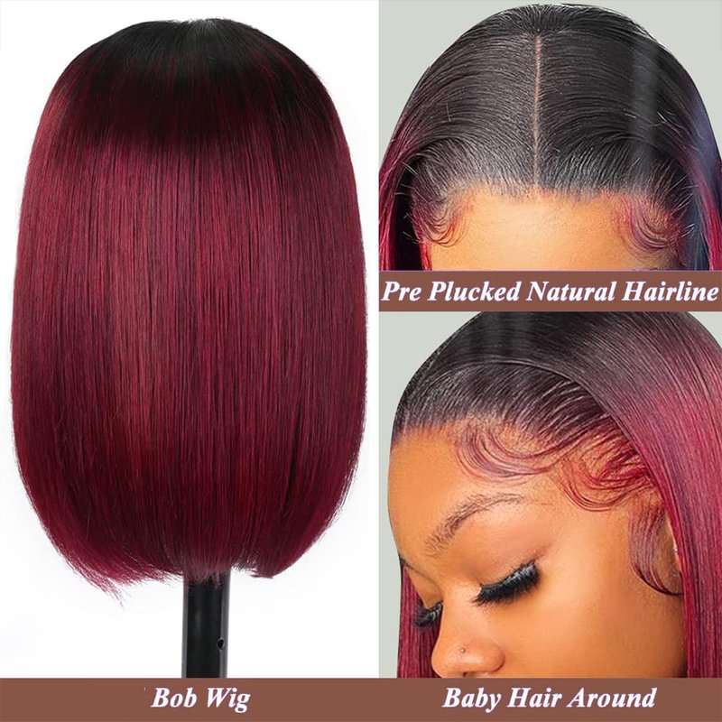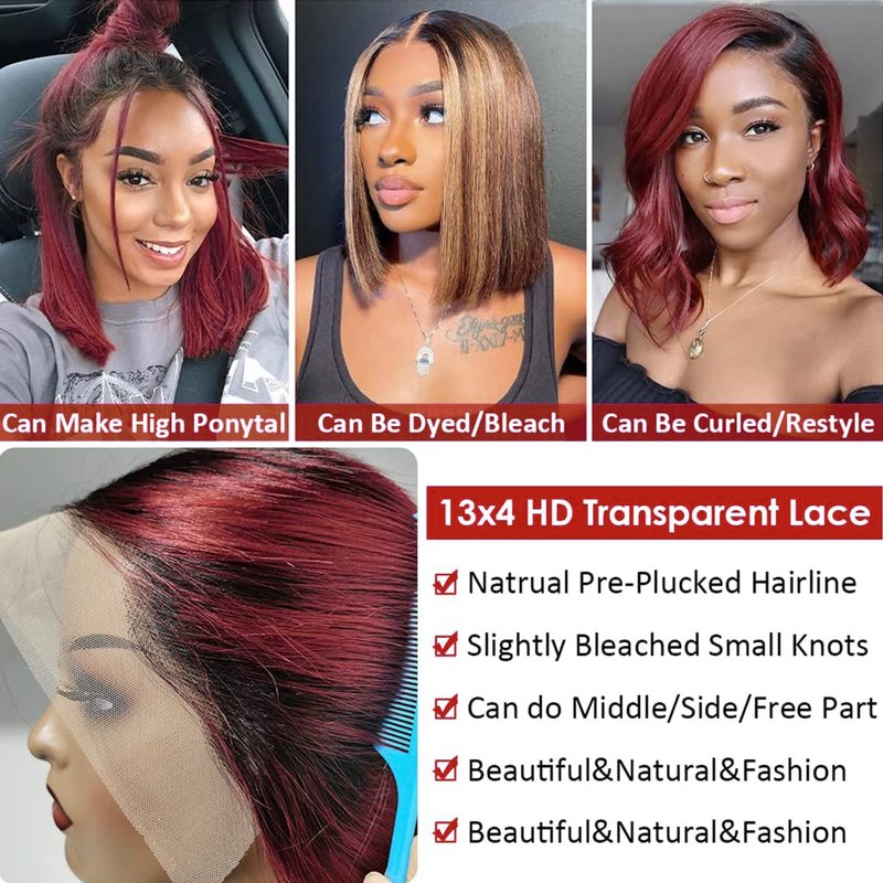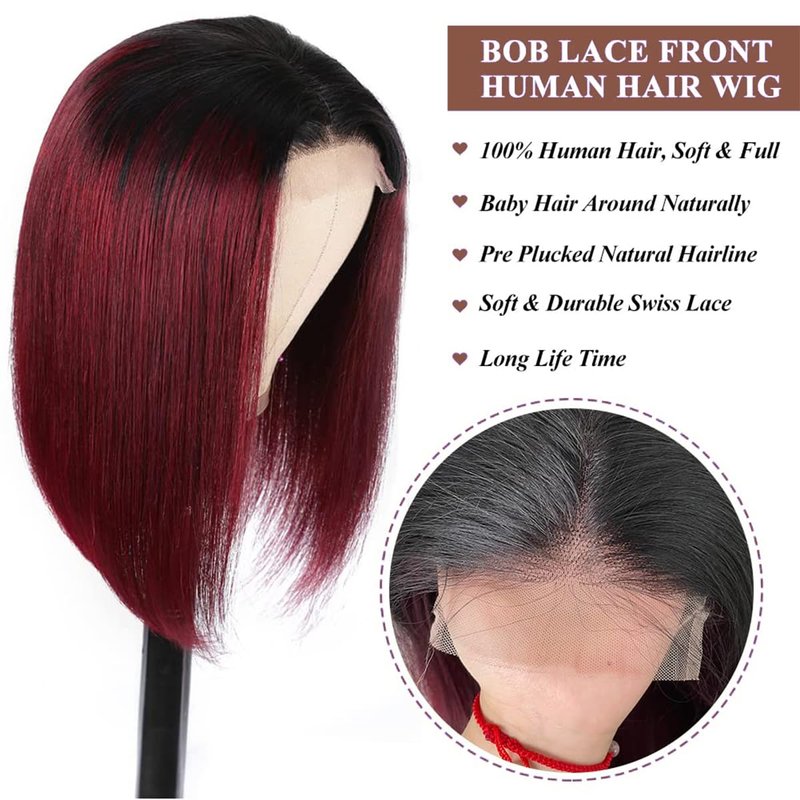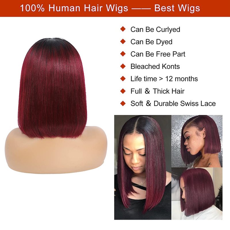 - 💗Bob Wig Human Hair: Short bob wig is a lot of girls’ pursue and like, looks more competent and suitable for those women who are devoting themselves to work, study or any other things. The color 1B/99J ombre lace front wig human hair will also bring you a different sense of fashion experience.