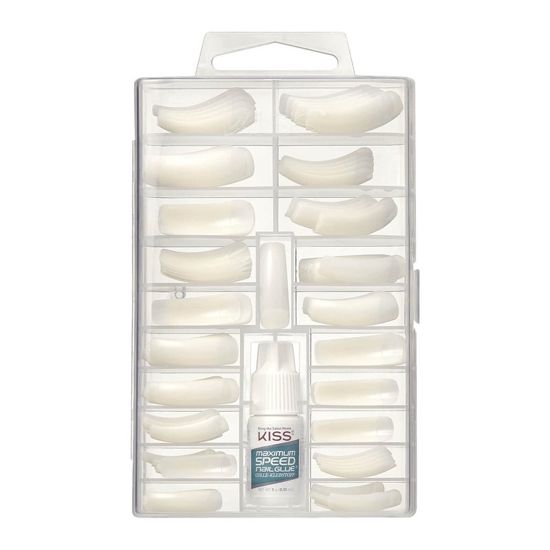 KISS 100 Tips False Nail Kit, Curve Overlap Style, Long Length, Long Lasting Fake Nail Tips, DIY Home Manicure Set with Nail Glue 3 g / 0.11 oz. and 100 Artificial Nails in 10 Sizes
