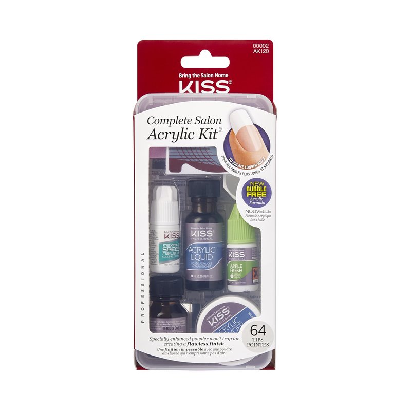 KISS Complete Salon Acrylic Fake Nails Manicure Kit, Acrylic Liquid, Acrylic Primer, Acrylic Powder Clear, Maximum Speed Nail Glue, Masking Formula, & 64 Long Length Bubble Free Acrylic Nails