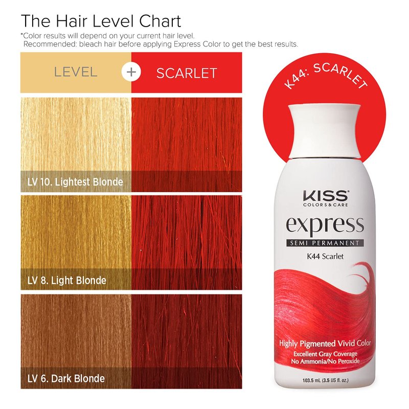 Kiss Express Semi-Permanent Hair Color 100mL (3.5 US fl.oz) (1 Count, Scarlet)