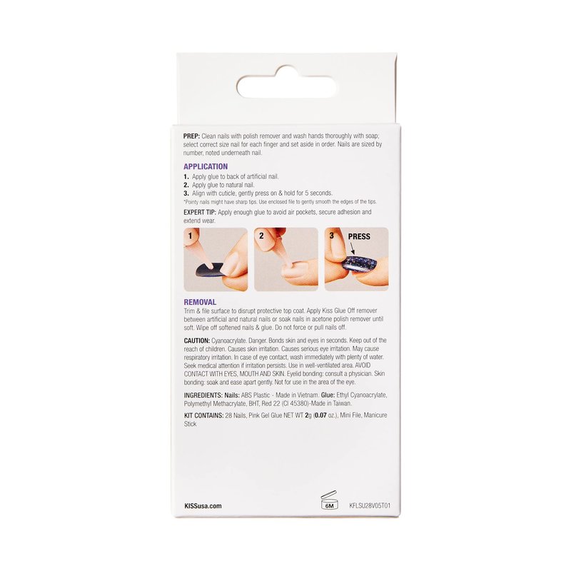 KISS Gel Fantasy Press On Nails, Nail glue included, True Color', White, Long Size, Coffin Shape, Includes 28 Nails, 2g glue, 1 Manicure Stick, 1 Mini File