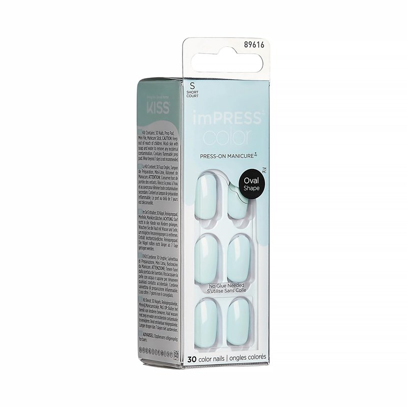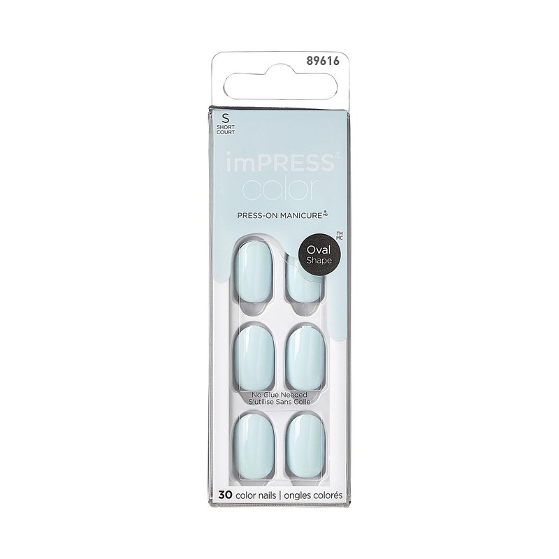 KISS imPRESS Color No Glue Mani 30 Pcs Press On Nails, Light Blue, Short Size, Oval Shape, Simple Peel & Press Easy Apply, Hassel-Free Removal, Essential Tools Included