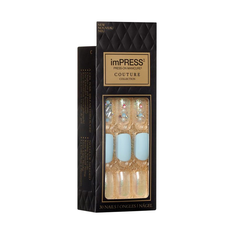 KISS imPRESS Couture Collection Press-On Manicure, Elegant, with Jewelled Accents, Includes 30 Fake Nails, Prep Pad, Mini File, and Cuticle Stick