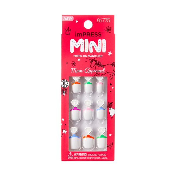 KISS imPRESS Mini Press-On Nails Manicure for Kids - 'French Pop' - Beginner Nail Art Set with Nail File & 20 Fake Nails