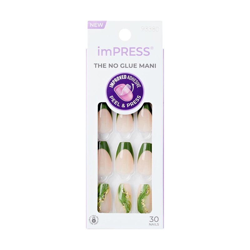 KISS imPRESS No Glue Mani Press-On Nails, Design, 'Ballerina', Neutral/green, Medium Size, Coffin Shape, Includes 30 Nails, Prep Pad, Instructions Sheet, 1 Manicure Stick, 1 Mini File
