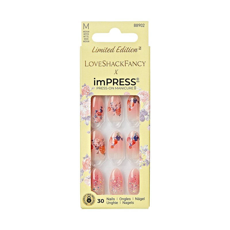 - Floral Beautify At Your Fingertips: imPRESS Manicure has partnered with iconic fashion brand LoveShackFancy to create an enchanting limited edition collection; 8 fanciful press-on manis feature LoveShackFancy's romantic hero prints