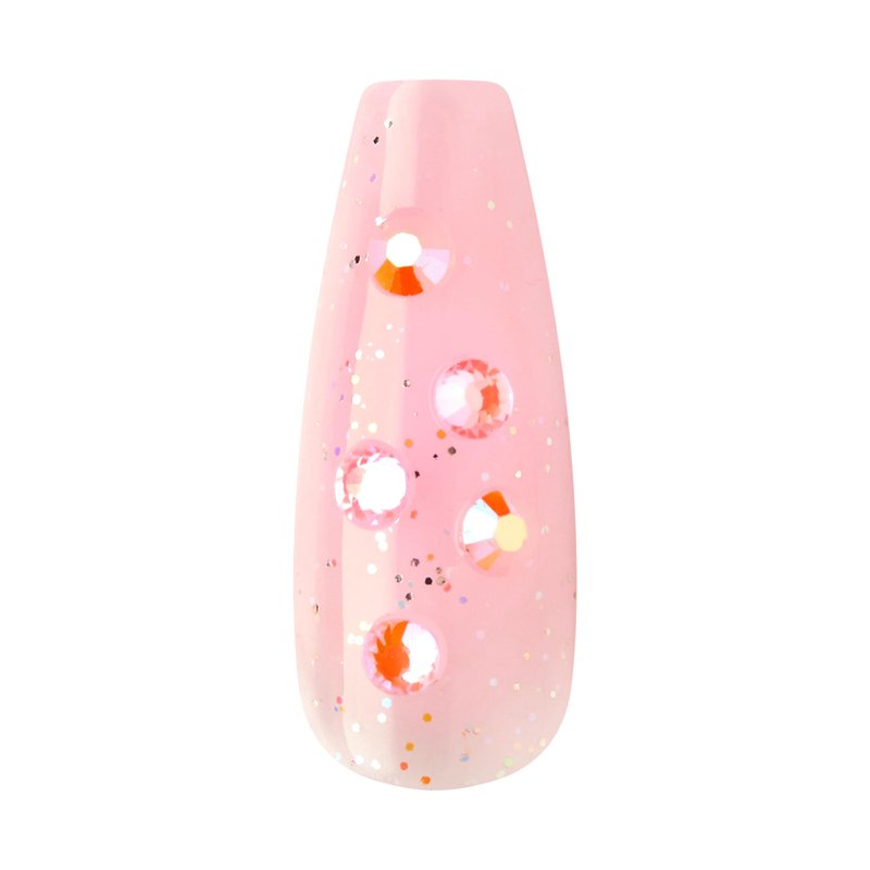 - High Shine & Volume: The gel top coat features shine and volume for a gorgeous at-home manicure for a high-end jeweled manicure with pink nails that are long length and coffin shaped