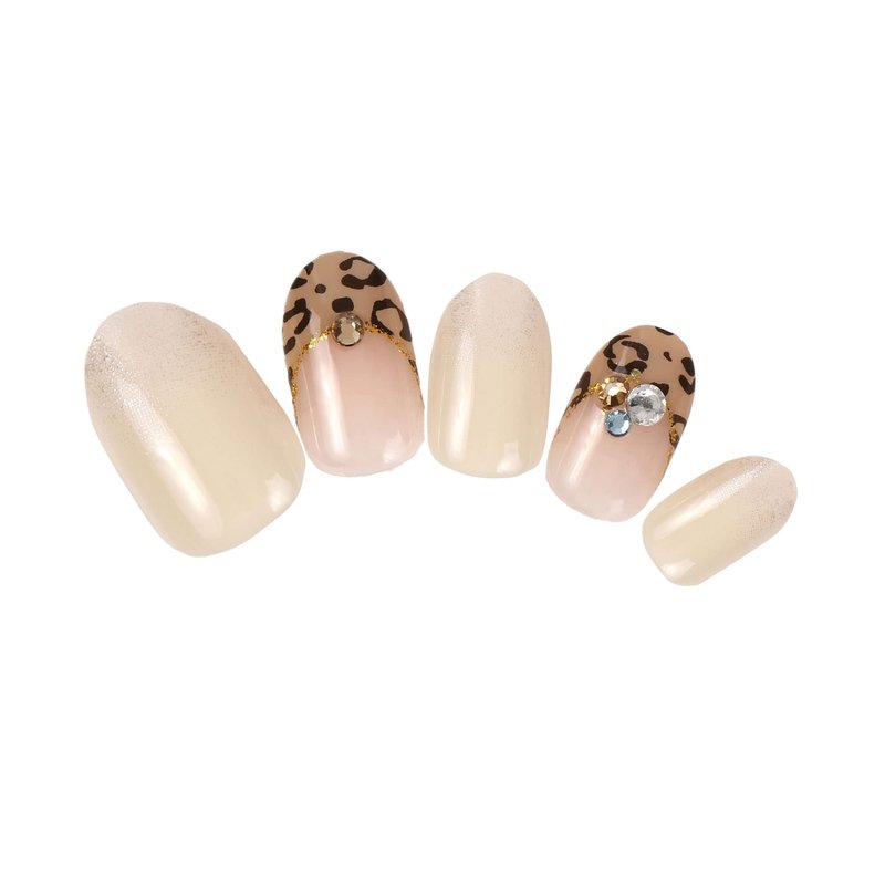 Kiss New York Press and Go False Nails Press On Nails Full Cover Nails Tips with Self Adhesive Tabs (Leopard French)
