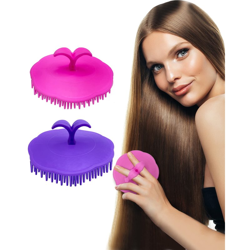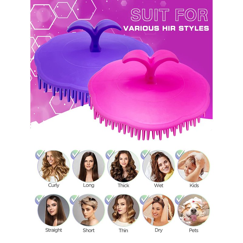 Kissfee Hair Scalp Massager Shampoo Brush Soft Scalp Scrubber for Dandruff, 2 Pack (Pink and Purple)