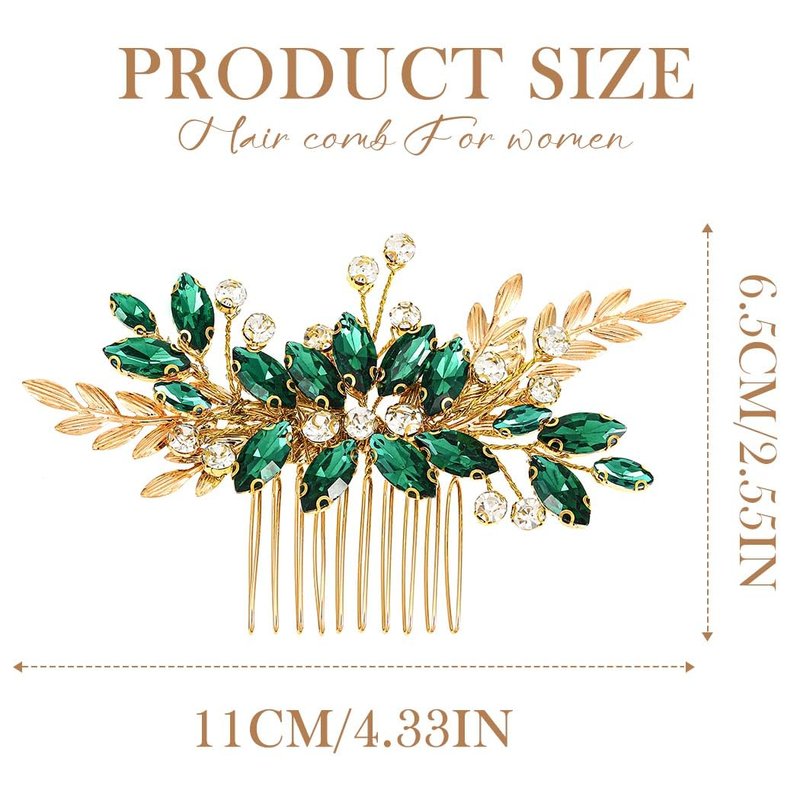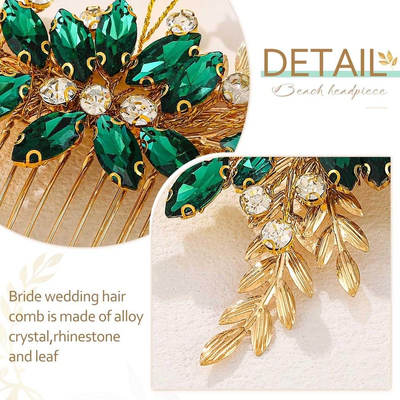 - Bride wedding hair comb is made of alloy,crystal,rhinestone and leaf,which is not easy to fade and broken.