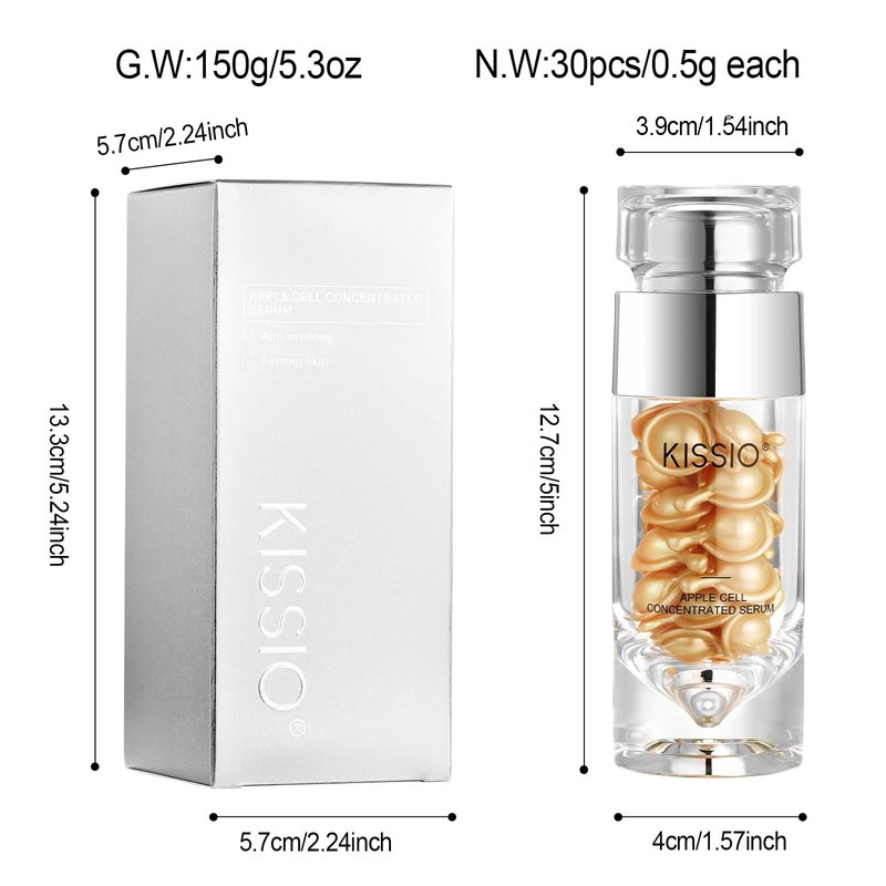 KISSIO Apple Cell Concentrate is a powerful antioxidant serum that helps anti-aging,reduce fine line and firm skin.Designed as a fresh and convenient capsule,it is clean and easy to use as you go!