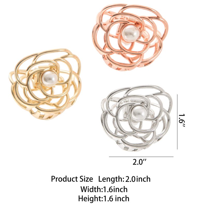 KISSKIKO Mini Rose Flower Hair Claw Clips for Women 2 Inch Cute Pearl Small Hair Clip | 4 Pcs Metal Nonslip Headdress Gold Silver Women and Girls Fine Hair Fancy Horsetail Clip