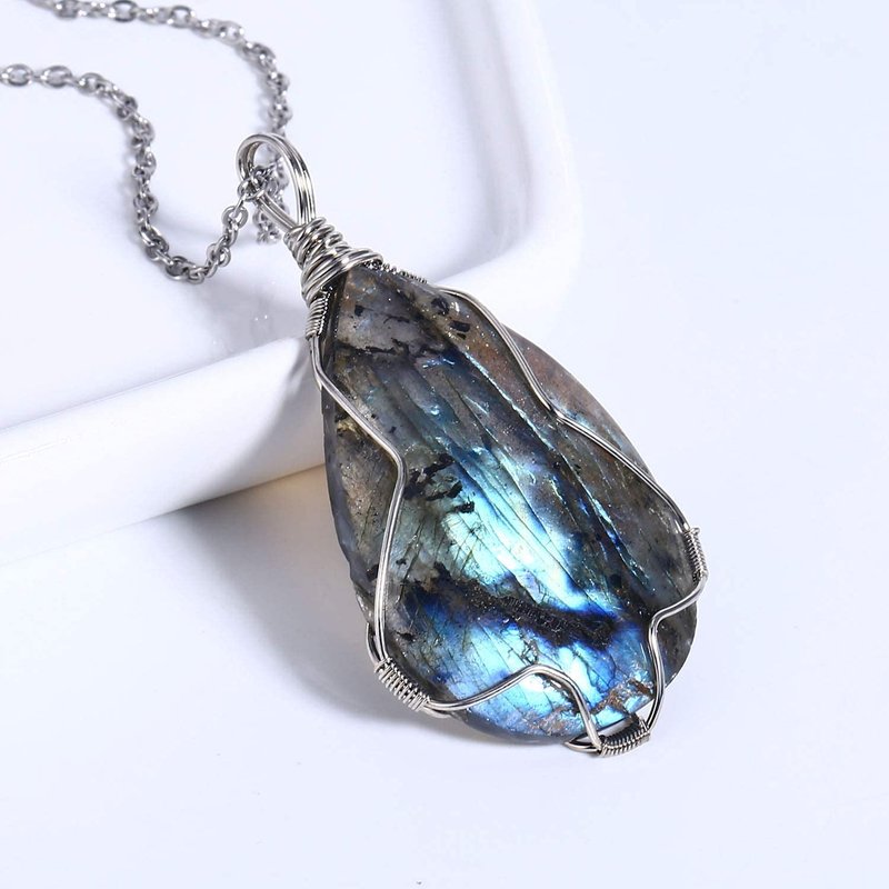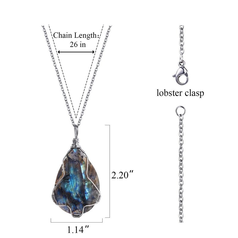- 【Real Raw labradorite Pendant Necklaces】Made of selected high quality raw labradorite stone. So image may show slight differences to the actual stone in color and texture. But it is guaranteed that you will get a 100% real Labradorite stone Necklaces.