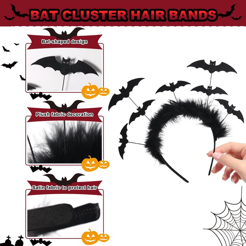 - Unique Design: Halloween women headbands features a seven bat design and is decorated with soft plush, cute and fun, suitable for matching with your different Halloween outfits, add a touch of charm and creativity to your outfits