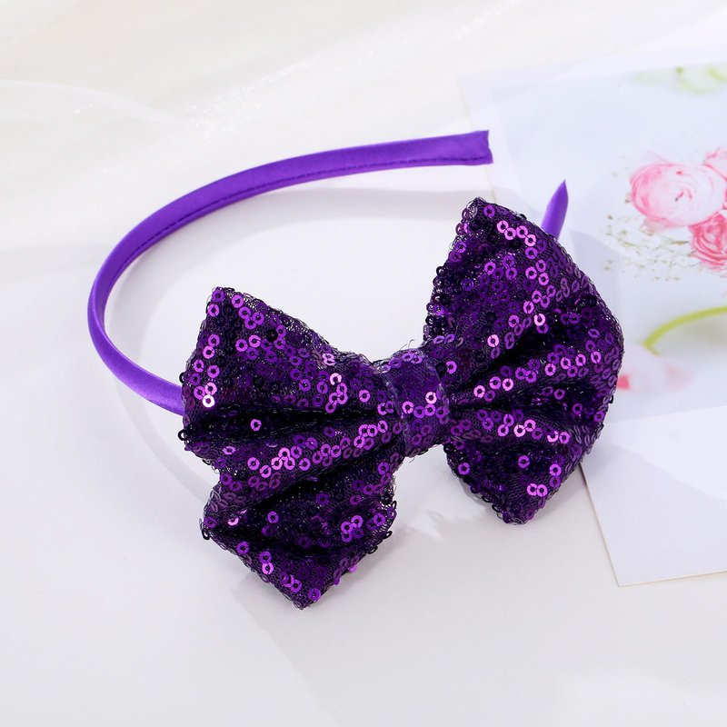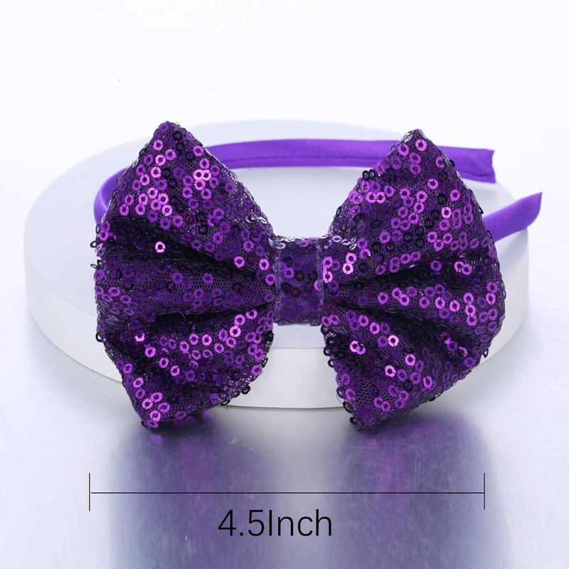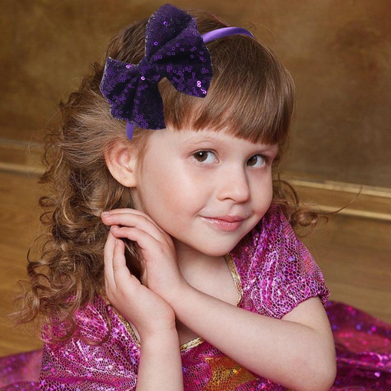 Kiszu Sparkly Sequin Hair Bow Headbands Fashion Glitter Cute Boutique Ribbon Bows for Girls, Kids, and Women (Dark Purple)