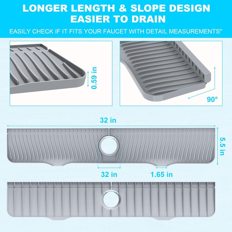 - 【Super Size】32 inch Kitchen Sink Splash Guard is larger than others and catches more water drips. The length of the faucet mat can be cut according to the sink. The length is suitable for large sinks. (31inch. 32inch. 33inch. 34inch)