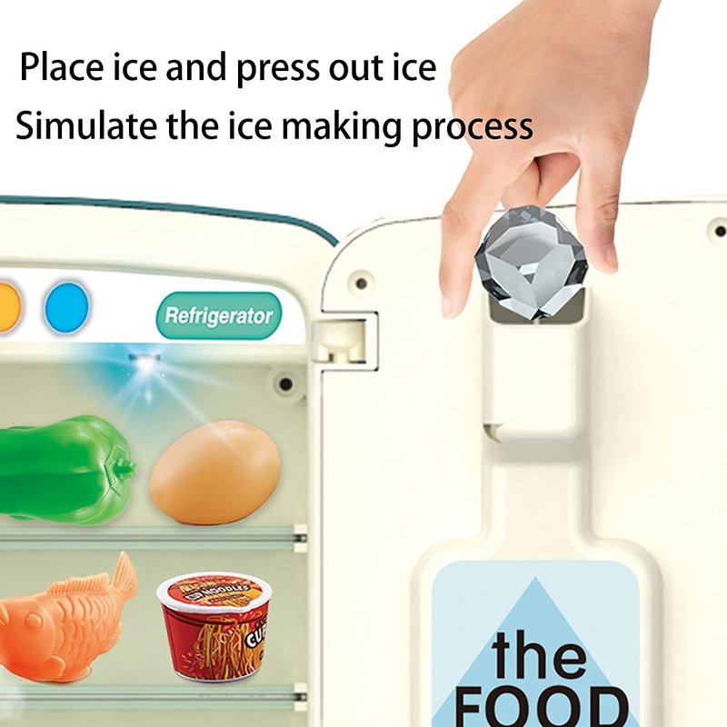 Kitchen Toys Fridge Refrigerator with Ice Dispenser Pretend Play Appliance for Kids, Play Kitchen Set with Kitchen Playset Accessories for Boys & Girls Music and Light